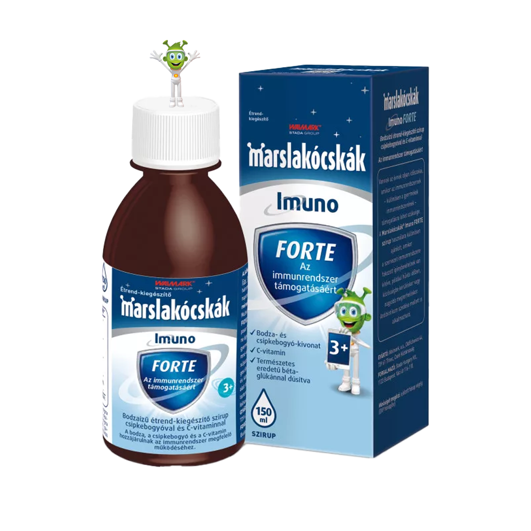 A Marslakócskák Imuno Forte az immunrendszer hosszú távú támogatására szolgál az olyan időszakok előtt és alatt, amikor az immunrendszer fokozott igénybevételnek van kitéve, mint például hűvös időben, közösségbe kerüléskor vagy nagyobb megterheléskor. Természetes alapú, nem tartalmaz tartósítószert, nem tartalmaz színezéket, a benne lévő növényi kivonatoknak köszönhetően pedig rendkívül finom ízű.