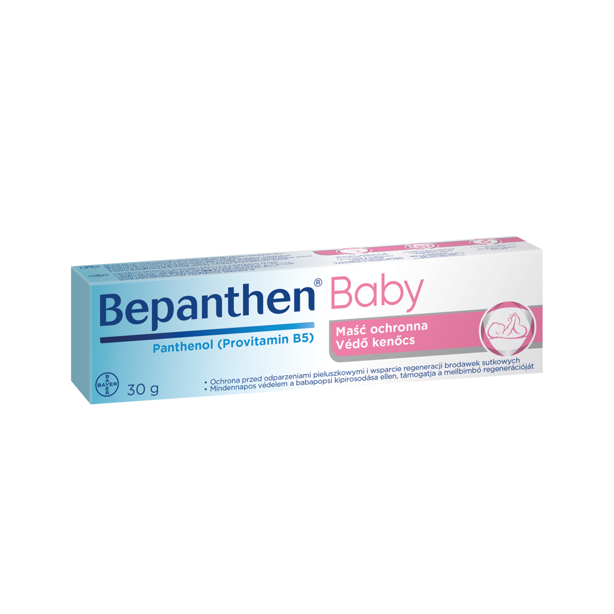 A Bepanthen Baby kettős hatásával óvja és ápolja az érzékeny babapopsit. B5 provitaminnal ápolja a babapopsit valamint légáteresztő védőréteget képez rajta, ami védi a kipirosodástól.