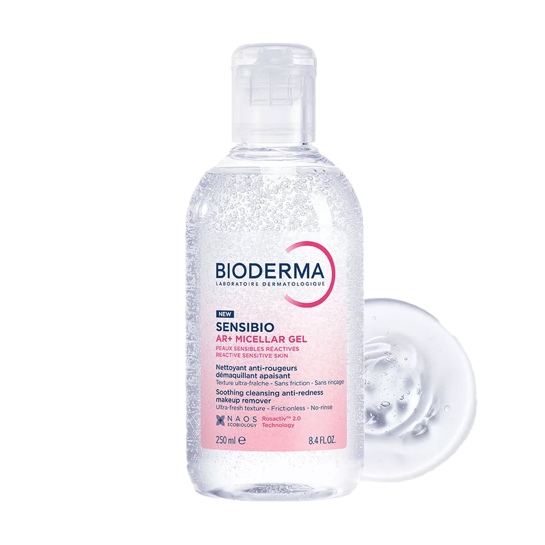 A Sensibio AR+ micellás gél gyengéden tisztít, eltávolítja a sminket és a szennyeződéseket (szennyezés és pollenek, fényszűrők). Megnyugtatja az érzékeny, kipirosodott bőrt. Enyhíti a kellemetlen érzetet és csökkenti a bőrpírt. Az első bőrgyógyászati kipirosodást gátló és nyugtató micellás gél a Biodermánál, ami már a tisztítés fázisában hat.