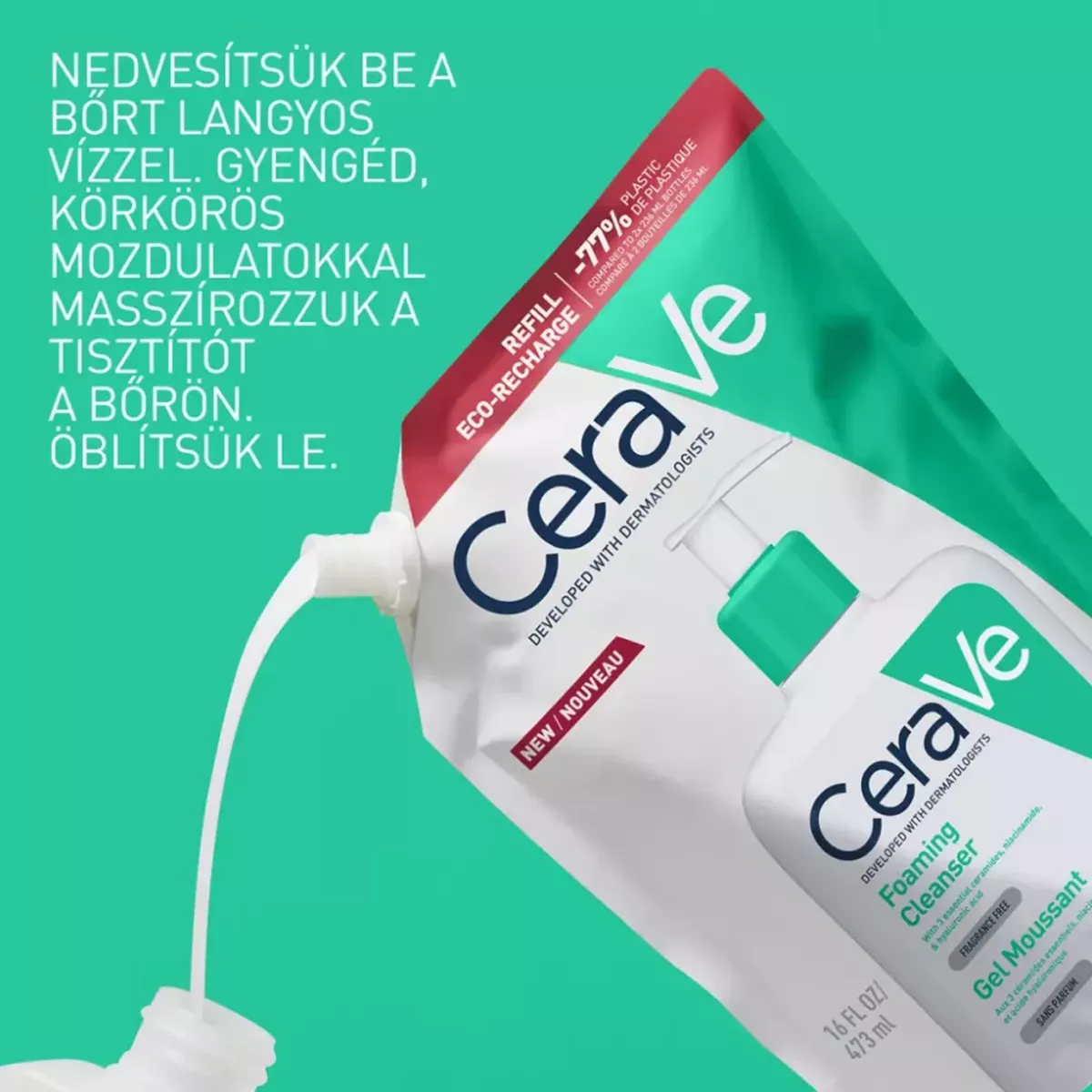 A CeraVe Habzó tisztító gél ceramidokat, hialuronsavat és niacinamidot tartalmaz a bőr védőrétegének támogatásáért, a hidratálás megtartásáért és a bőr nyugtatásáért.