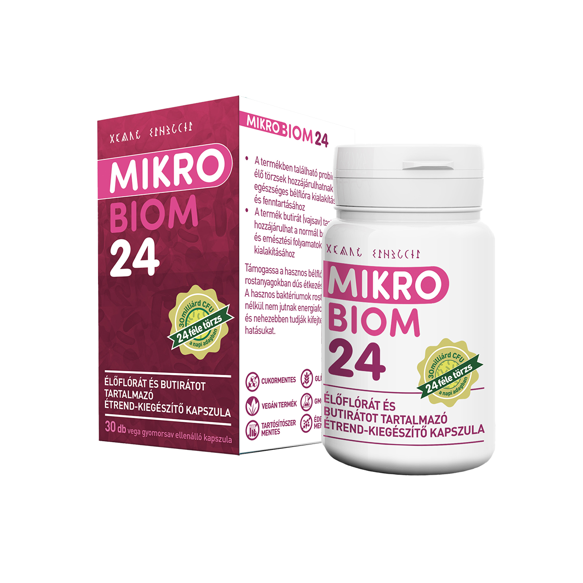 A MikroBiom 24 termék kiemelkedően magas mennyiségű és minőségű probiotikus, úgynevezett jó baktériumokat tartalmaz. Azért, hogy ezek a törzsek minél jobban kifejtsék hatásukat, ezért a baktériumokat gyomorsav ellenálló kapszulába zártuk. Ezek a speciális gyomorsav ellenálló kapszulák a gyomorsavban nem oldódnak fel, de lúgosabb közegben (vékonybél) kezdenek oldódni, így biztonsággal el tudnak jutni a vastagbélbe, ahol a mikrobiomunk található.