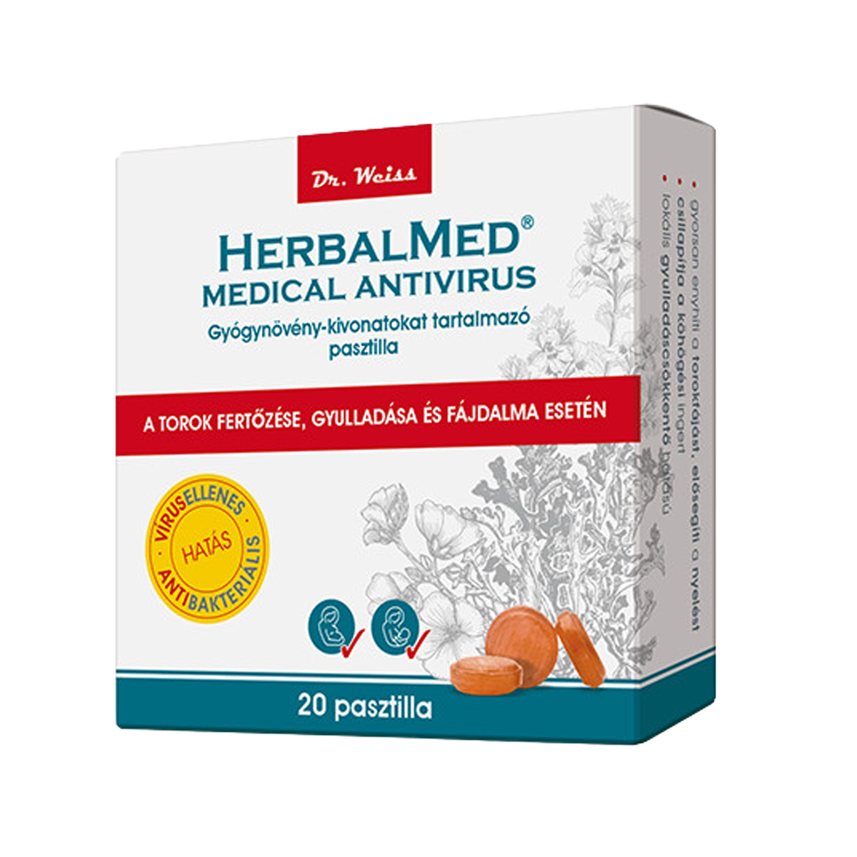 A Herbalmed® Medical pasztilla gyógynövény kivonatok kombinációja, melyek a koncentráció és az egyes komponensek kölcsönösen támogató hatása révén kiemelkedő hatékonyságot biztosítanak a természetes gyógycukorkák között.